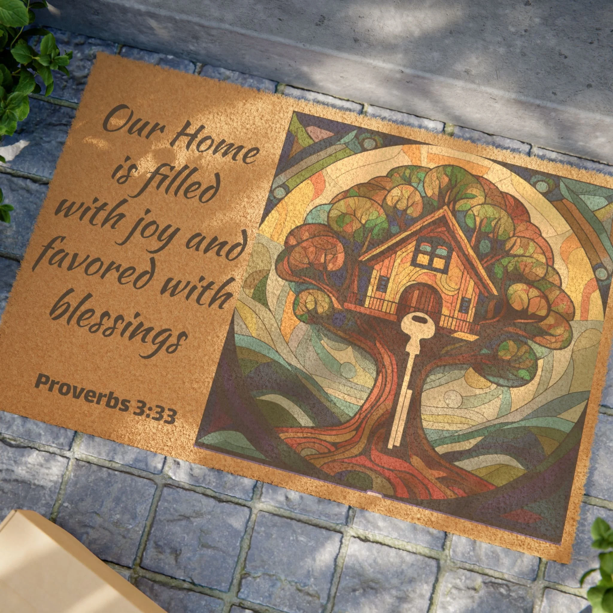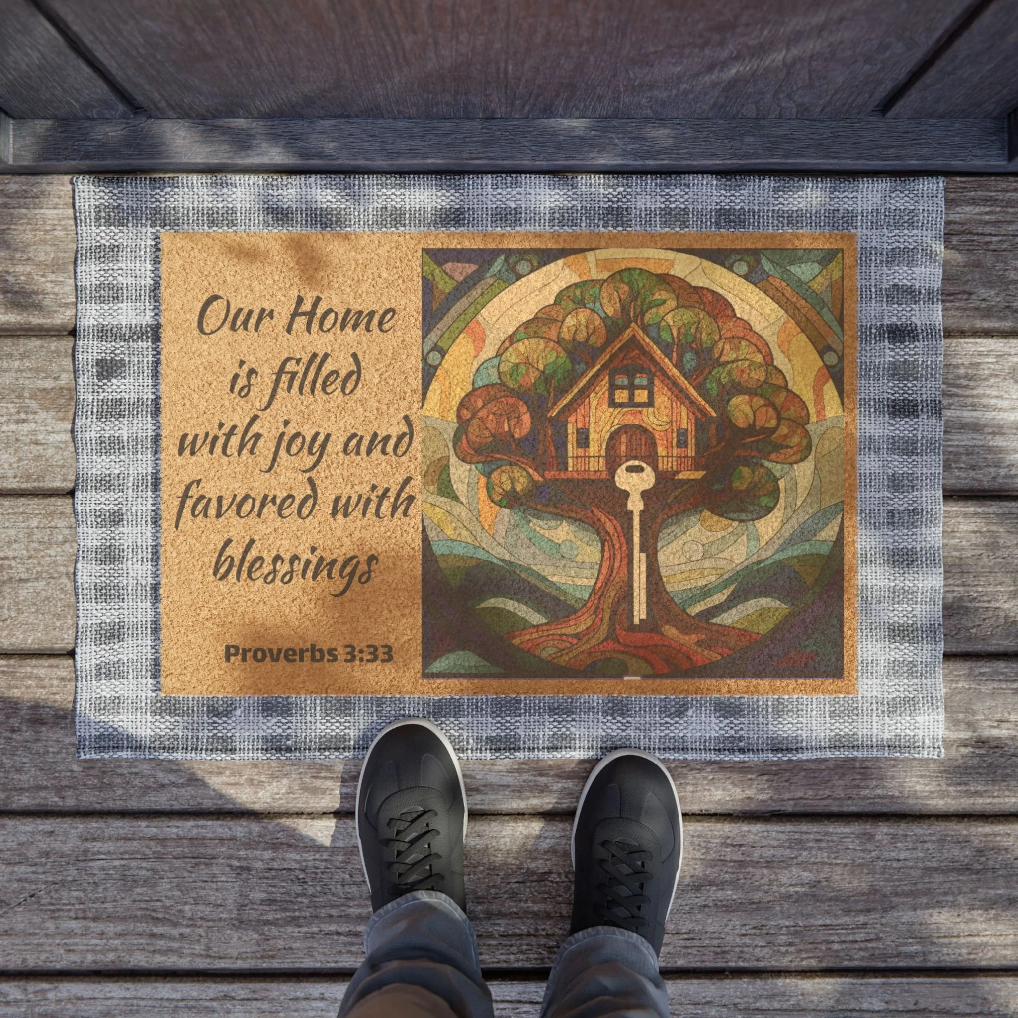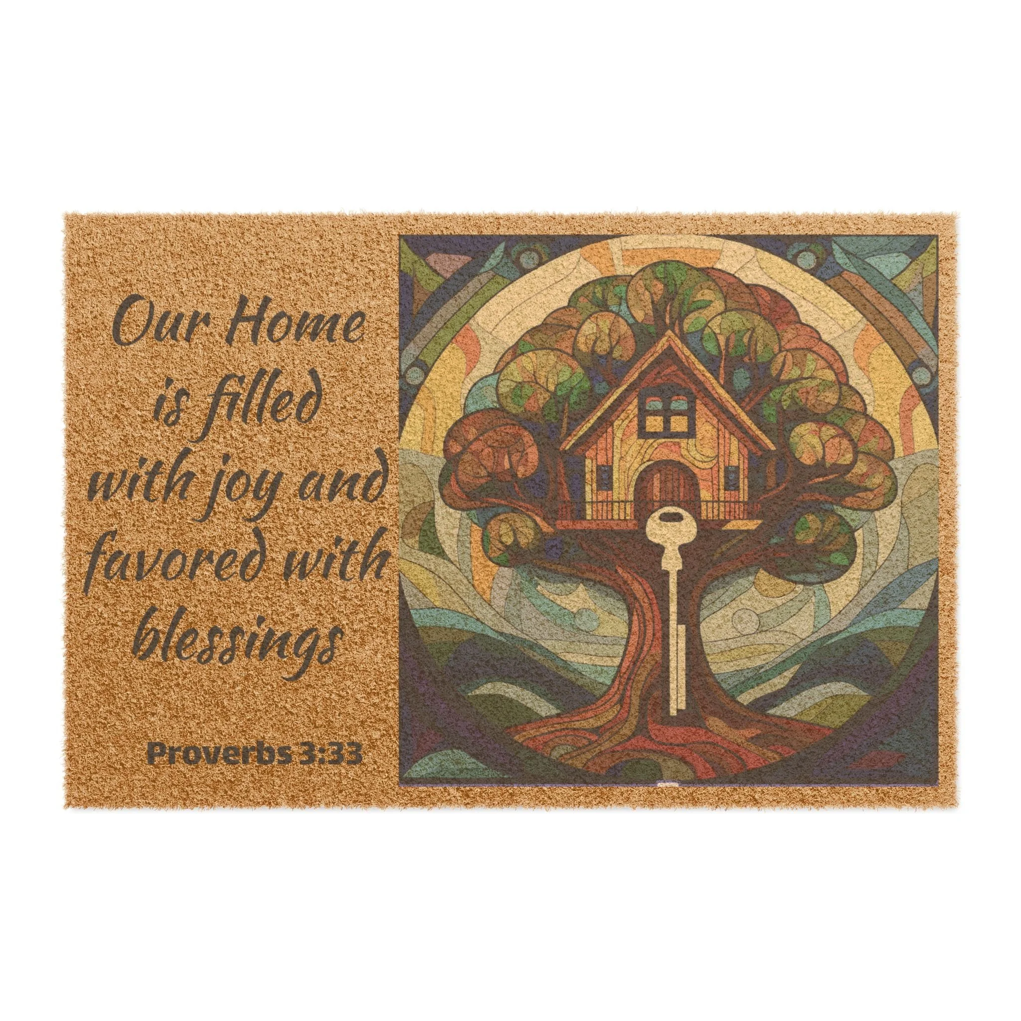 Welcome doormat that bestows blessings. Perfect for outdoor use. Will make the perfect hostess gift. All mats feature black vinyl backing for increased stability.